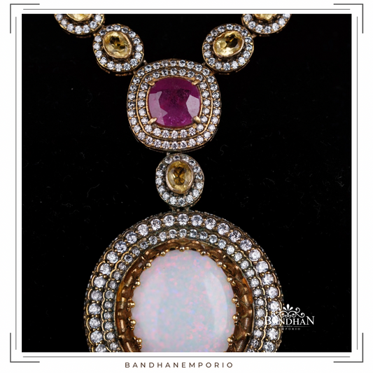 Welcome to Bandhan Emporio, a tribute to rich Indian tradition and culture. Rooted from Hyderabad (city of pearls), founded in 2016 when Silver Jewelry was in novice stage. Bandhan showcases luxury, designer, bespoke, “Made in India” jewelry products. Bandhan is known for vibrant, ethnic, on-trend statement jewelry at affordable prices. Bandhan Emporio offers premium handcrafted 925 silver jewelry with 24kt gold plating, using premium quality natural gem stones. Bandhan provides lab-verified certificates for the material used ensuring authenticity. Designed for brides and women who cherish elegance, tradition, and individuality, each Bandhan piece blends timeless Indian craftsmanship with modern luxury aesthetics. Our heirloom-inspired jewelry is perfect for weddings, festive occasions and special celebrations, offering exclusivity, intricate detailing and everlasting beauty. Bandhan Emporio serves clients across India and internationally with premium packaging, quality craftsmanship and personalized service.