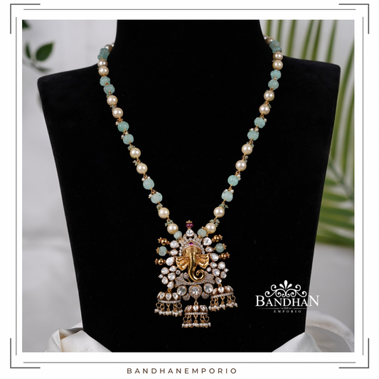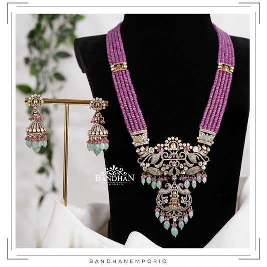 Pure 92.5 Silver Polki Guthapusalu Necklace set