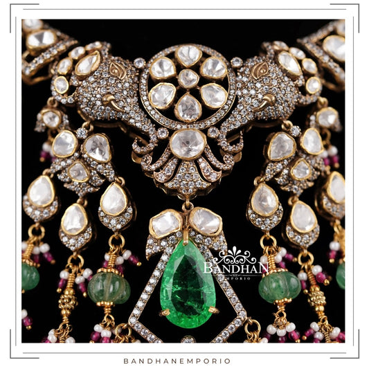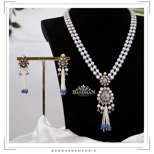 Pure 92.5 Silver Victorian Multi sapphire Necklace set
