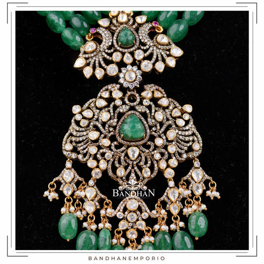 Pure 92.5 Silver Polki Victorian Necklace set
