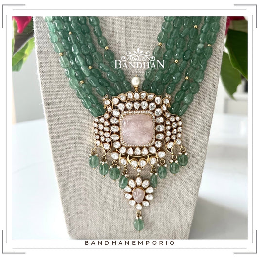 Pure 92.5 Silver Moissanite Polki Navratan Necklace