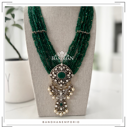 Pure 92.5 Silver Polki Victorian Necklace set - 30% OFF - FINAL SALE
