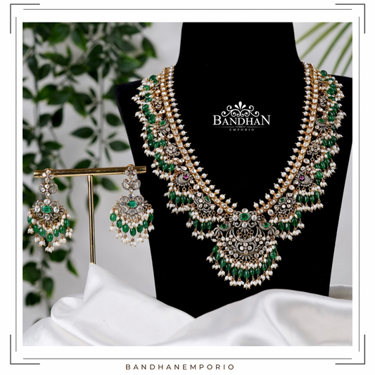Pure 92.5 Silver Polki Victorian Guthapusalu Necklace set