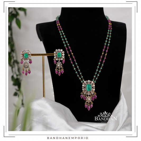 Pure 92.5 Silver Polki Victorian Pendant set