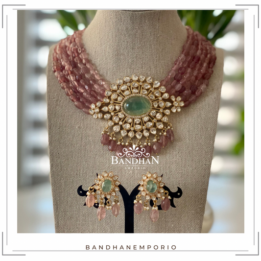 Pure 92.5 Silver Polki Necklace set - 35% Off - FINAL SALE ITEM