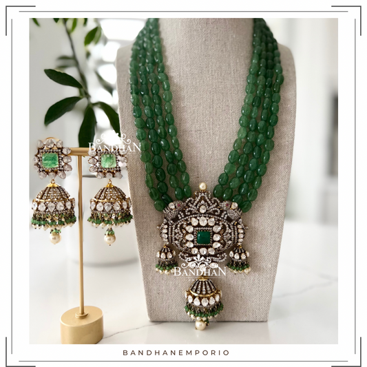 Pure 92.5 Silver Polki Victorian Necklace set - 25% OFF - FINAL SALE