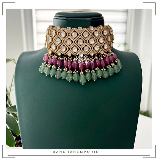 Pure 92.5 Silver Polki Choker Set - 40% Off - FINAL SALE ITEM