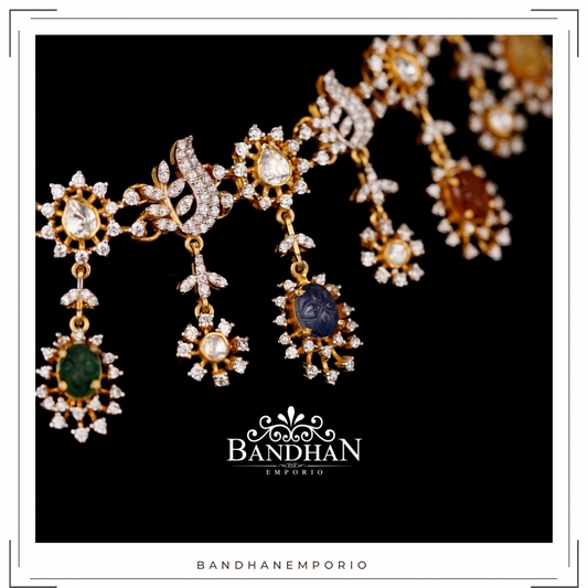 Pure 92.5 Silver Victorian Multi sapphire Necklace set - 20% OFF - FINAL SALE