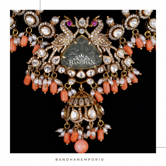 Pure 92.5 Silver Polki Victorian Necklace set - 30% OFF - FINAL SALE