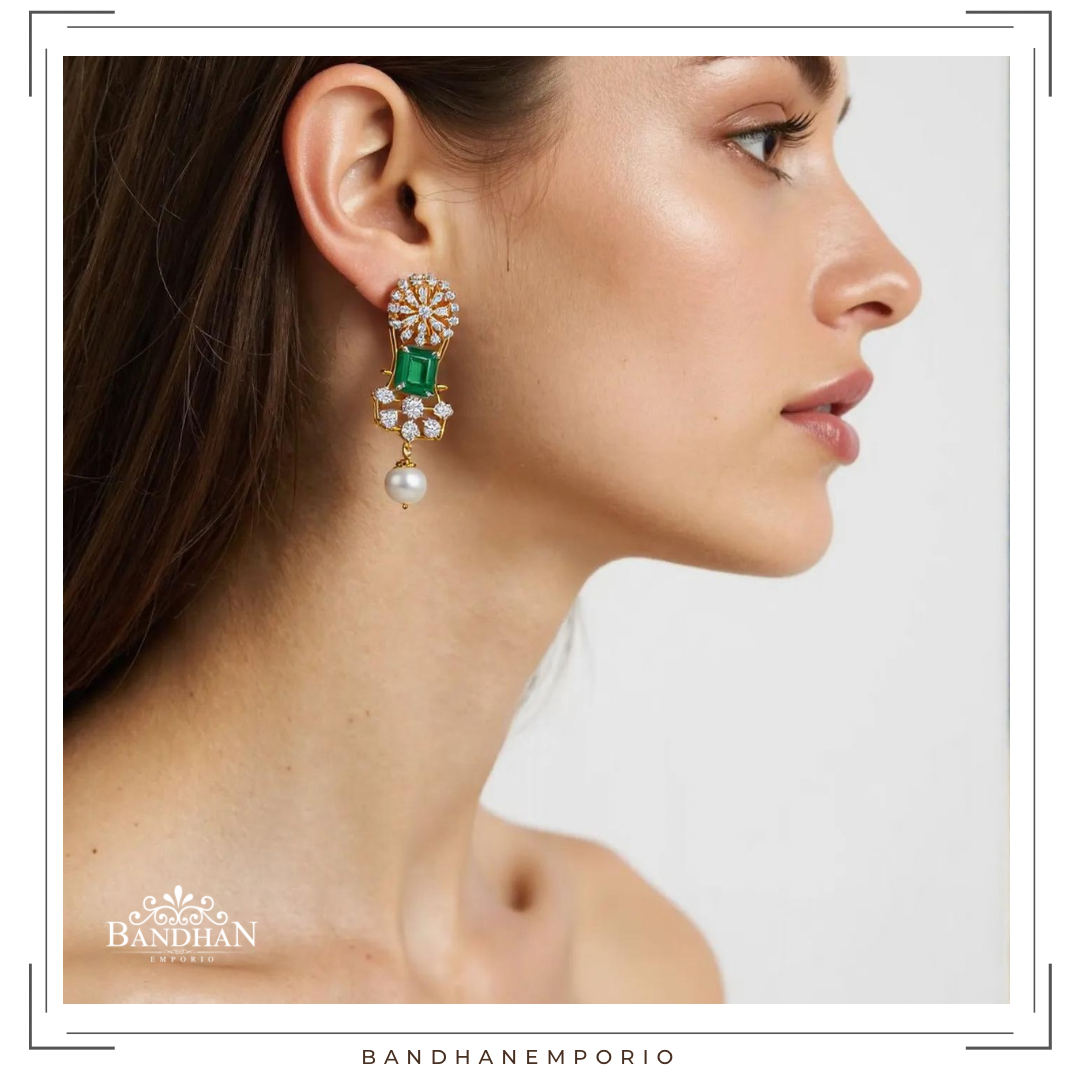 Handcrafted Polki Victorian choker Set, 92.5 Silver hallmarked, with 24ct gold plating, studded with premium quality Swarovski cubic zirconia stones, natural emerald and fresh water pearls. Comes with a pair of matching earrings.