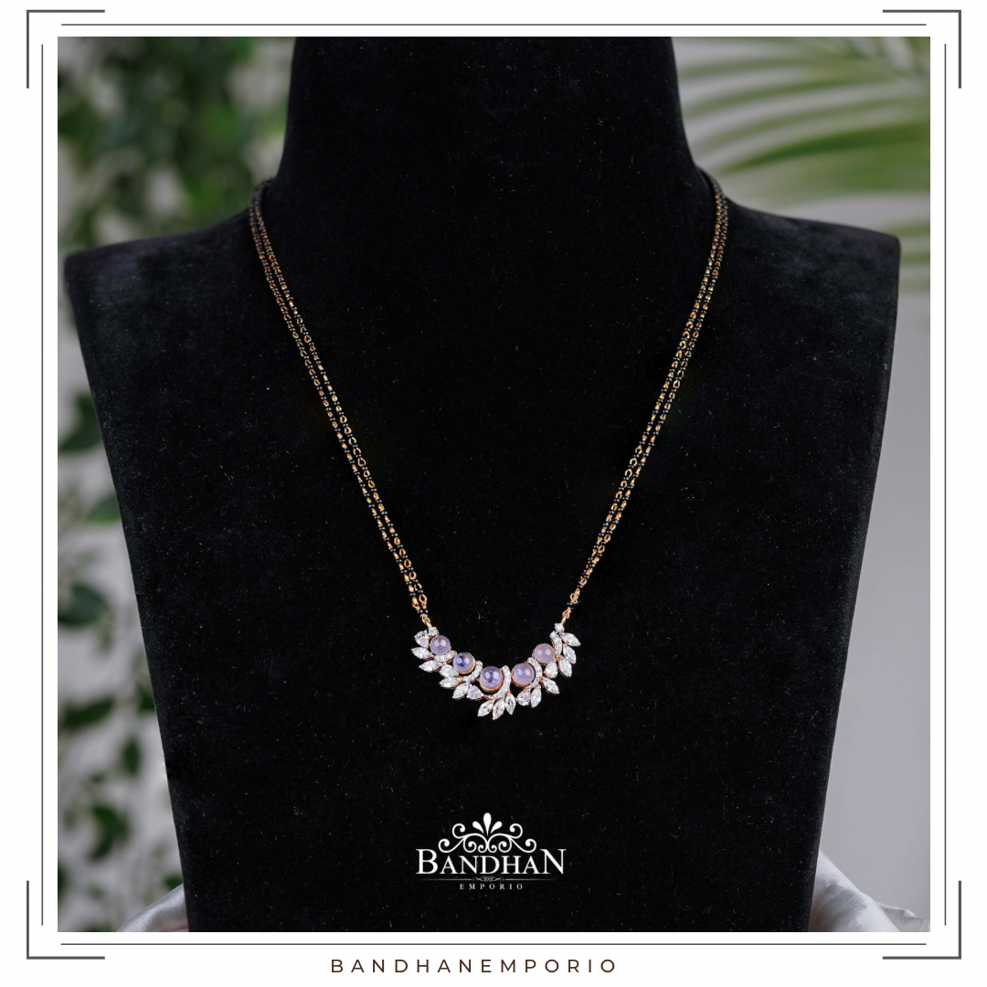 Exquisitely handcrafted Pure Sterling 92.5 Silver hallmarked, 24ct gold plated, black beads necklace, pendant studded with premium cubic zircons and premium precious Tanzanites. (No earrings)
