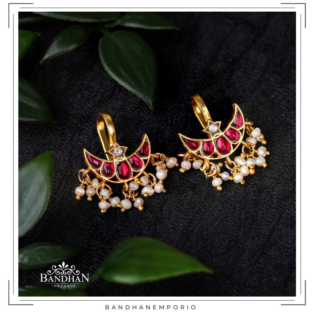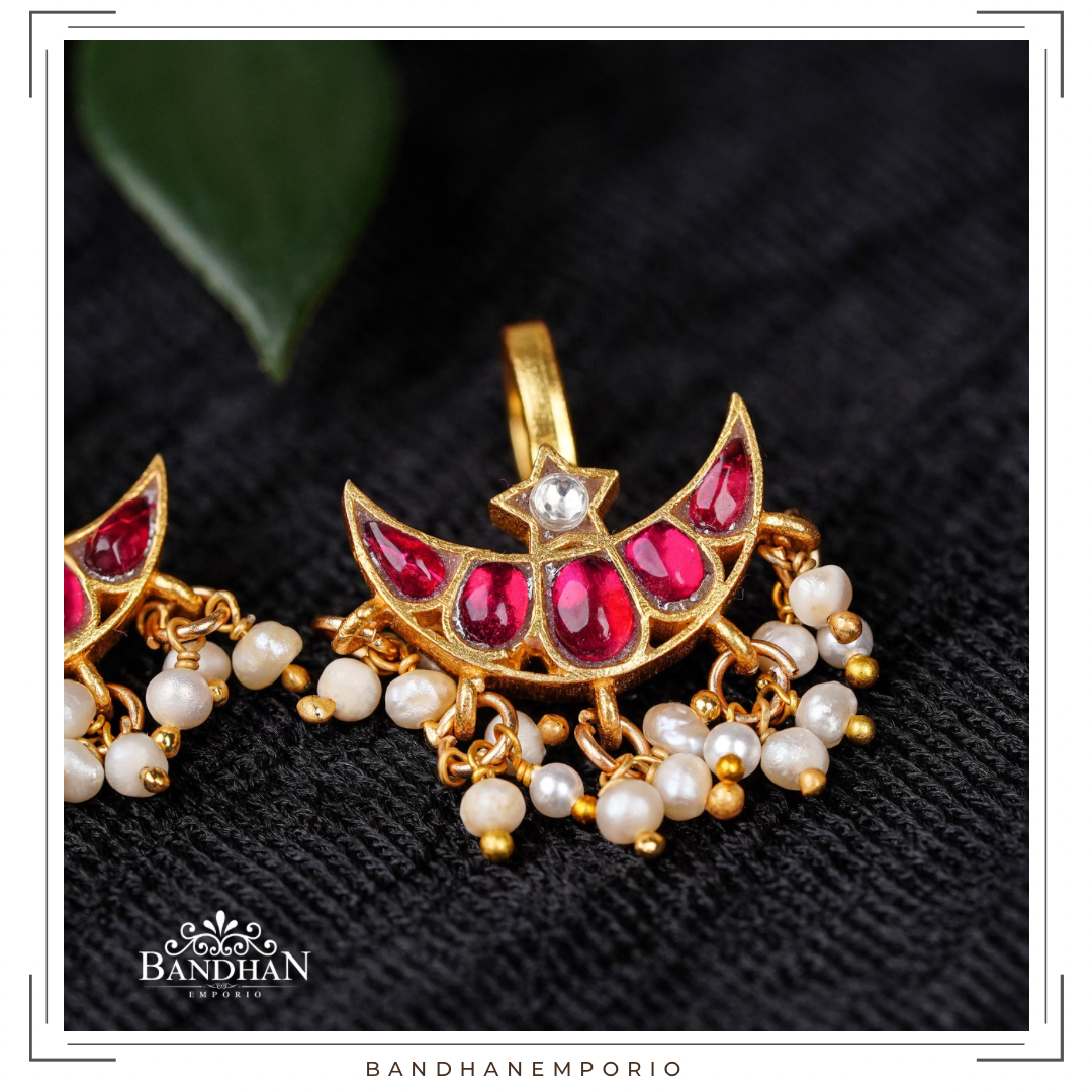 Handcrafted, 92.5 Silver Hallmarked, detachable kundan bugadi with 24ct gold plating, studded with, premium kundan stones and embellished with natural pearls.