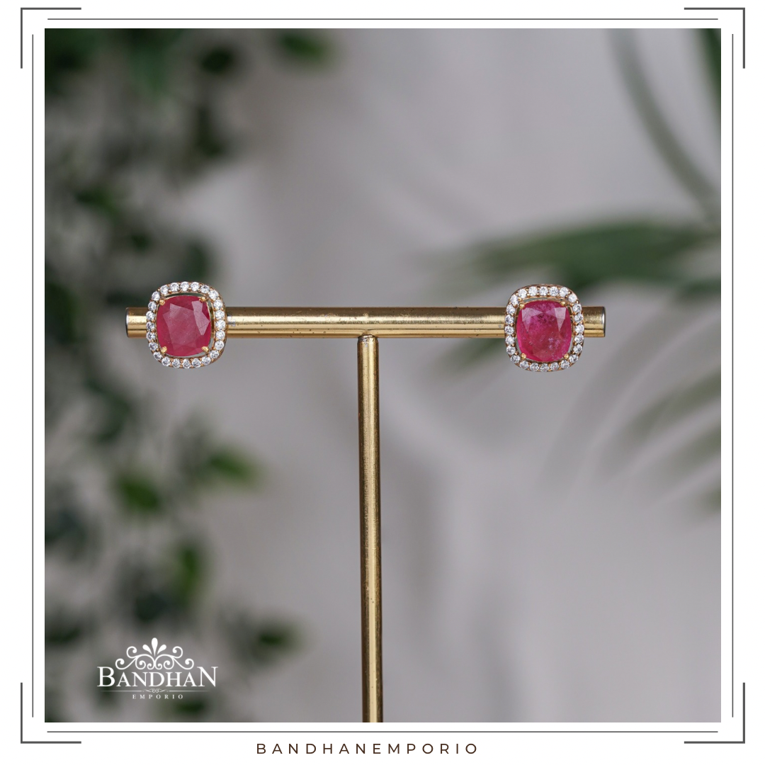 Handcrafted, 92.5 Silver Hallmarked, Polki necklace set with gold plating, studded with, premium lab grown polkis, cubic zircons, precious natural rubies. Comes with pair of matching studs with screwback.