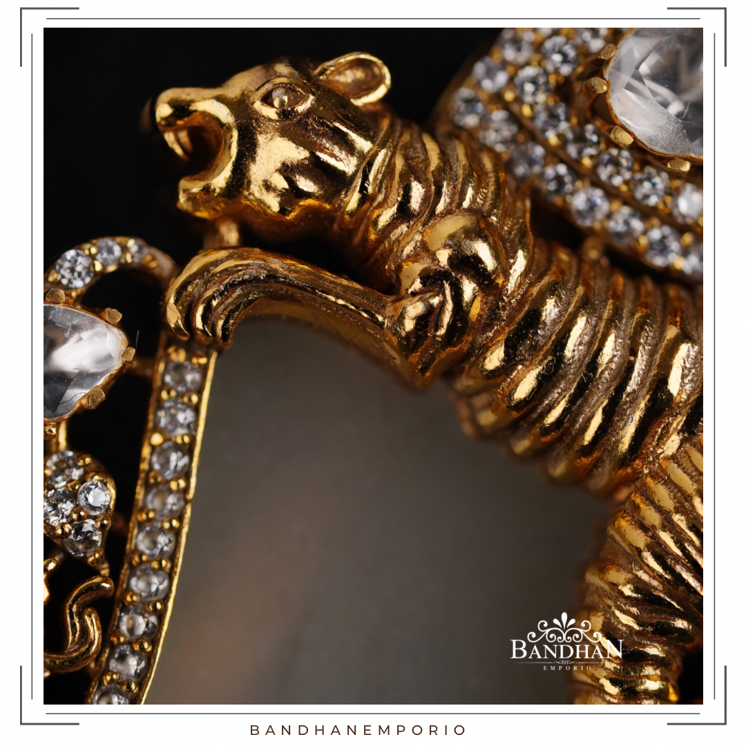Handcrafted Victorian light antique finish, detachable Pendant, 92.5 Silver Hallmarked, with 24ct gold plating, studded with premium quality cubic zirconia stones, and synthetic polkis. Pendant is detachable.